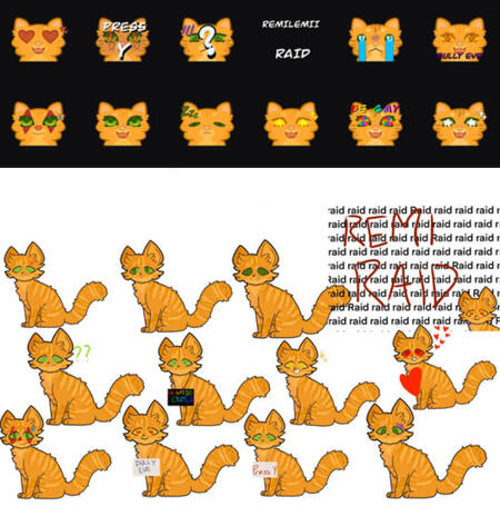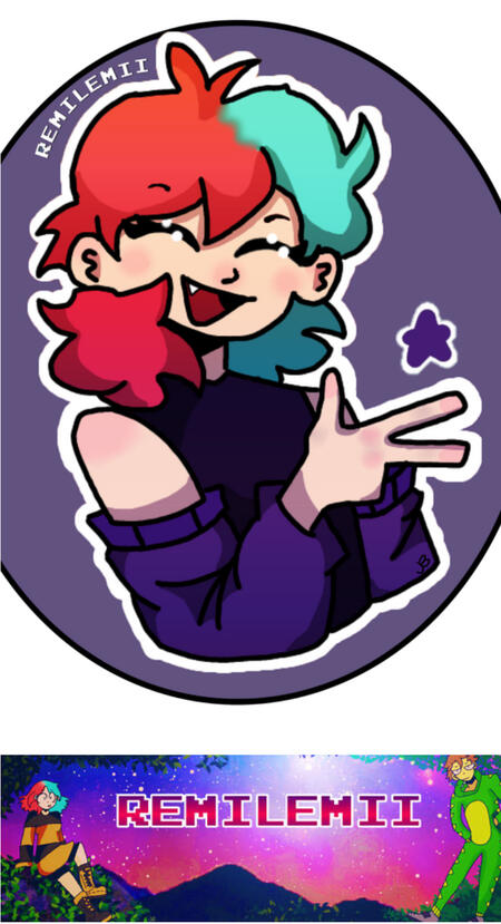 This is Zestys work for me! They have done my twitch emotes and the discord emotes too! I cannot express how much I adore the art they've done for me, I appreciate it all and Zesty does their own content stuff so you should absolutely go follow them and support them! First image is of the twitch emotes and the second one was the original emotes but were too big so because discord emotes.